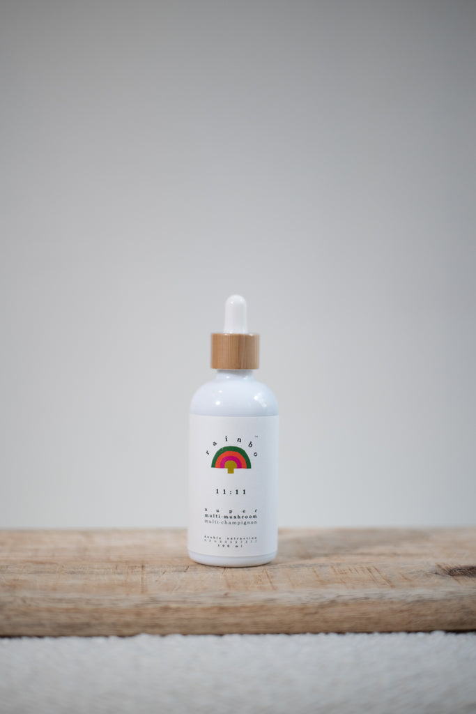 11:11 A blend of 11 powerful and potent functional mushrooms made to consume every day, like a multivitamin. 11:11 is a dual extract tincture to support a high vibrational body. Mushrooms work in synergy with each other to protect and support the body and mind, supporting your immune system and resilience.*